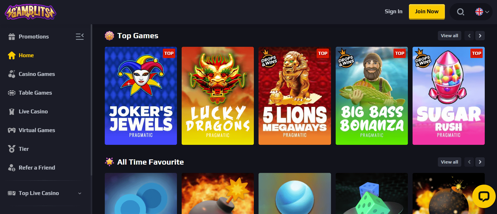Das Gamblits Casino arbeitet mit Anbietern verschiedener Branchen zusammen, die über mehr als 5.000 Produkte verfügen. Dazu gehören alle Arten von Spielautomaten, Crash-Spielen, virtuellen und Live-Tischspielen, Live-Gameshows und mehr. Glücklicherweise werden die meisten davon mit einer „Play For Fun“-Funktion angeboten, sodass Sie ein wenig üben und dann entscheiden können, ob sich ein Echtgeldeinsatz lohnt.