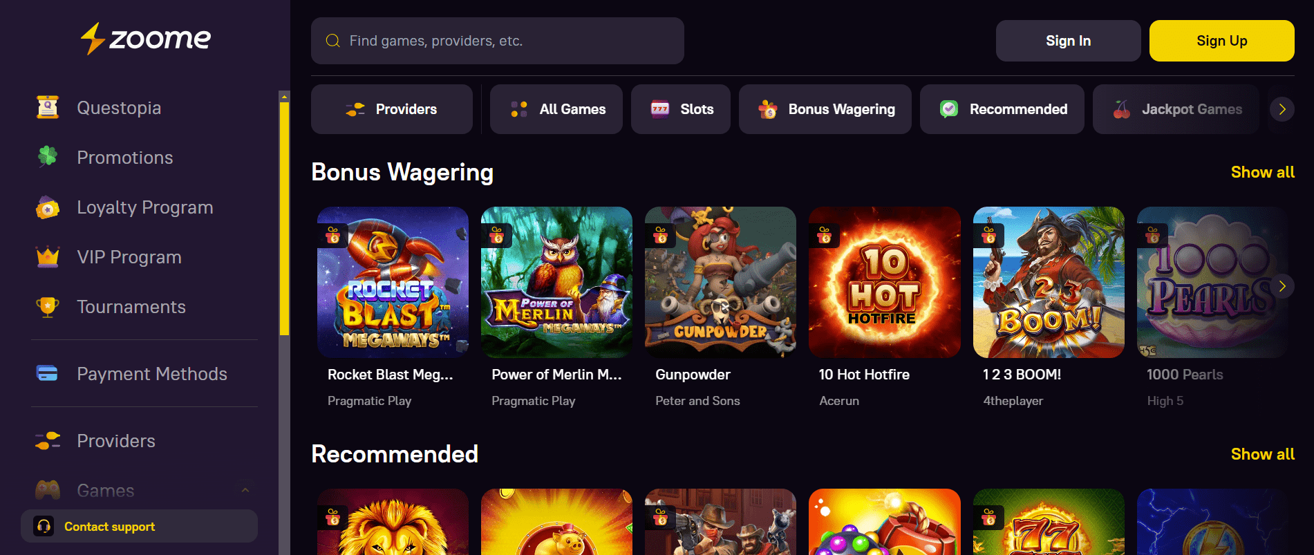 Zoome Casino ist ein Online-Casino, in dem Spieler eine Reihe von Spielen von Top-Anbietern wie NetEnt, Play’n GO, Microgaming, Pragmatic Play, Endorphina, Yggdrasil Gaming und mehr genießen können. Die Website unterstützt mehrere verschiedene Sprachen und kann auf den meisten Plattformen genutzt werden, darunter PC, Laptop, Smartphones und Tablets. Spieler können sich auch sicher fühlen, da das Casino vollständig lizenziert und von der Regierung von Curacao reguliert ist.